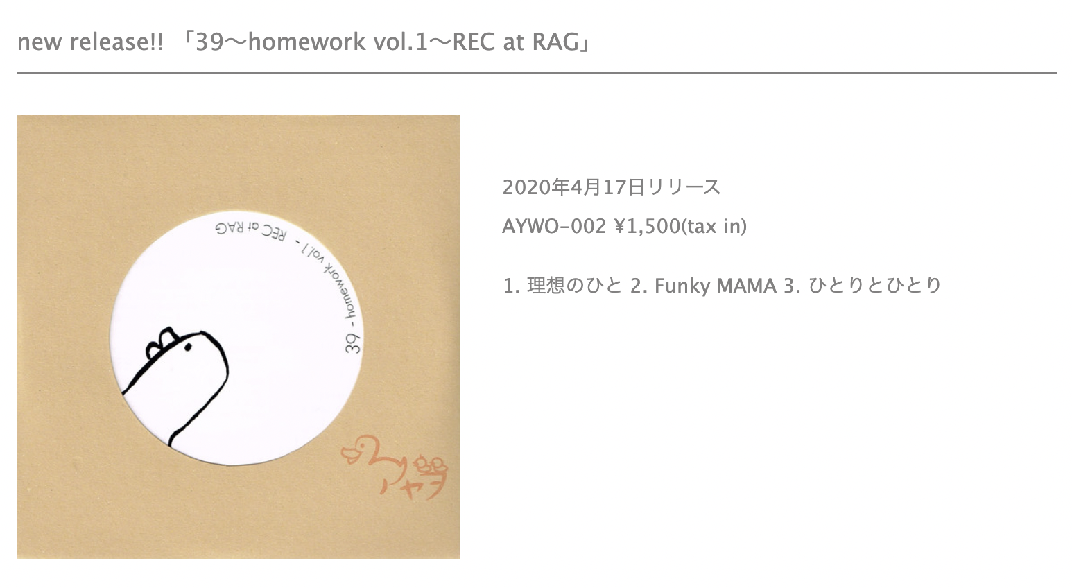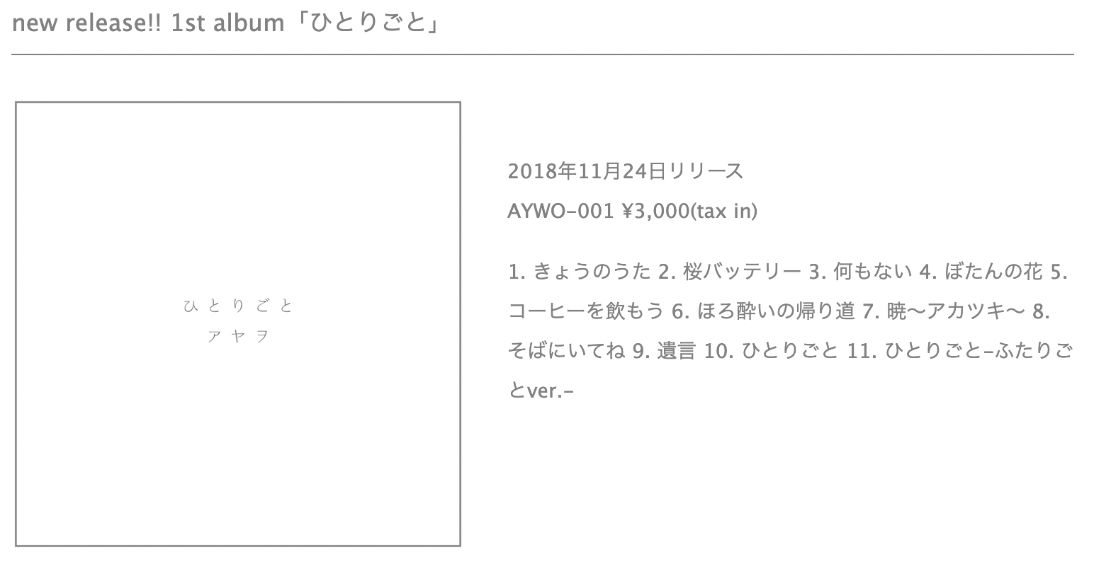 2018年11月24日 1st solo Album『ひとりごと』リリース。
